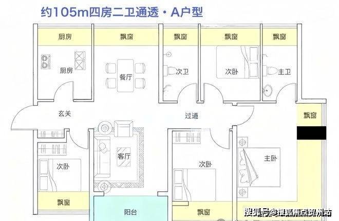 105㎡ 4房2厅2卫(满赠南北对流版)