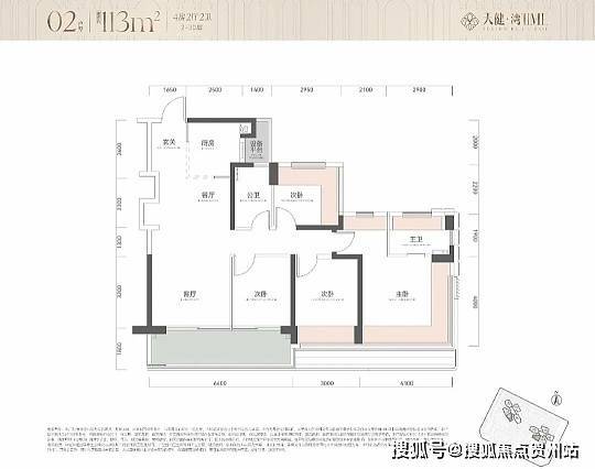 113㎡四房两厅两卫(主力):南北通透或南向设计,主卧套房,6.4 米宽景阳台,得房率超 100%