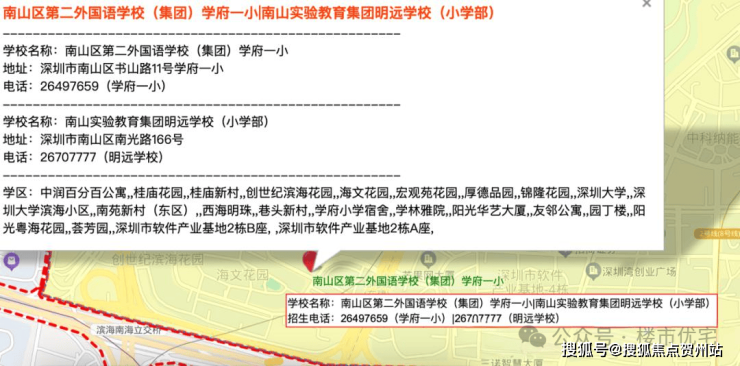 处南二外学府一小和南二外学府中学学区范围内,直线距离500米范围内有省一级学校深圳南山中加学校(学区范围如有变动,以南山区教育局最新颁布政策为准)