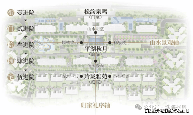▫汲取岭南四大名园精华,布局两轴三庭,五进六园,尽显归家礼序。