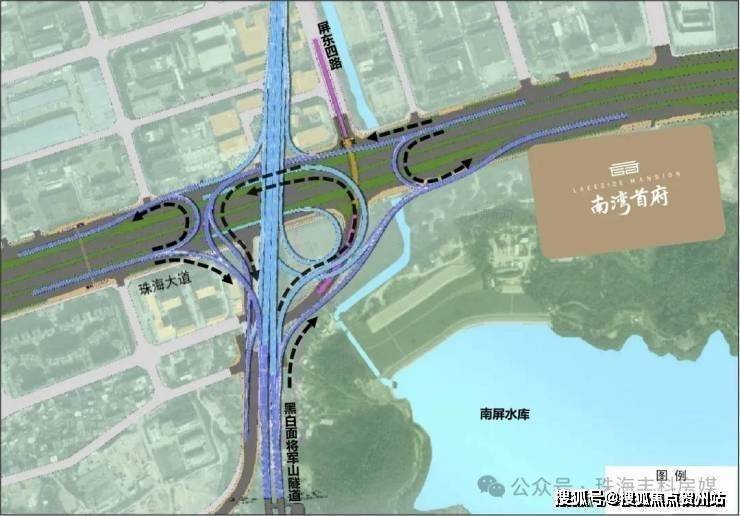 向西,经珠海大道直达西区,未来经开通的立交-黑白面将军山无缝衔接洪鹤高速快达金湾;
