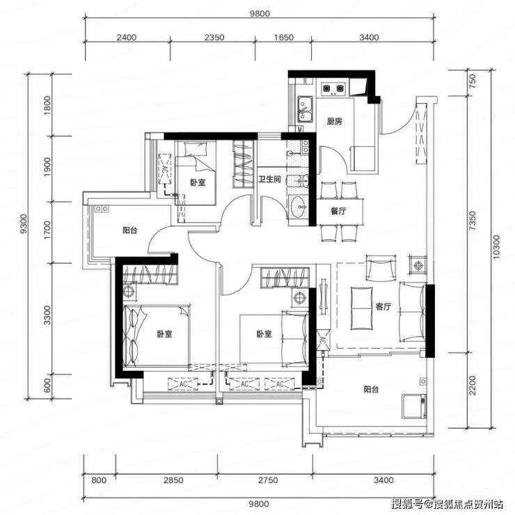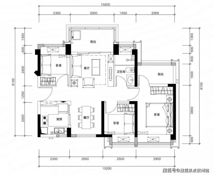 一、81㎡3房2厅2卫户型: