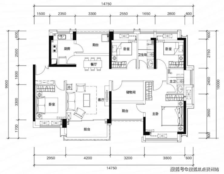 ✅ G01户型:约135㎡ 五房两厅两卫: