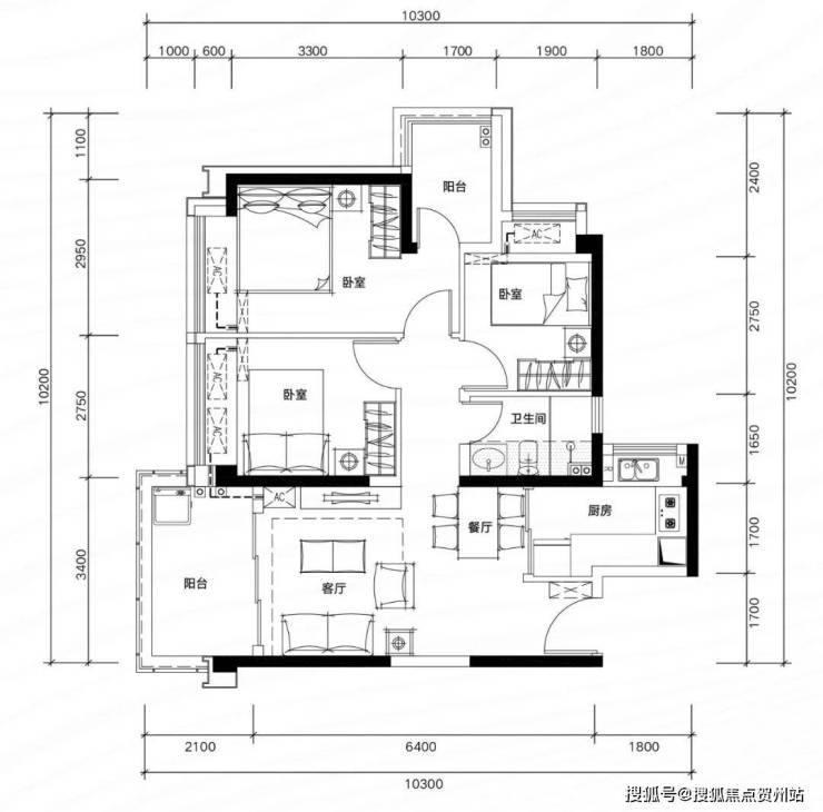 ✅ B06 户型:约109㎡ 阔绰四房两厅两卫: