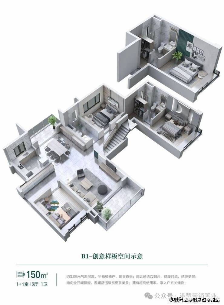 潮流户型, 南北通透双阳台,舒适4房体验!