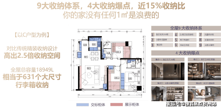享受最新阳台飘窗政策,约95%的户型高使用率,包含9大收纳体系,4大收纳爆点,近15%收纳比,你的家比别人多出30%的使用空间。
