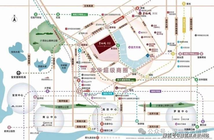 幸福城臻园周边交通非常便利,临近地铁4号线与25号线的交汇处。其中,距4/25号线的“龙华站”约400米,距25号线的“景龙站”约200米。同时,项目周边还有深大城际的“民治北站”,大约2.5公里的距离。从这里出发,仅需3站即可抵达红山,4站到达深圳北,5站到达南山,7站到达福田,交通网络四通八达,出行极为便捷。