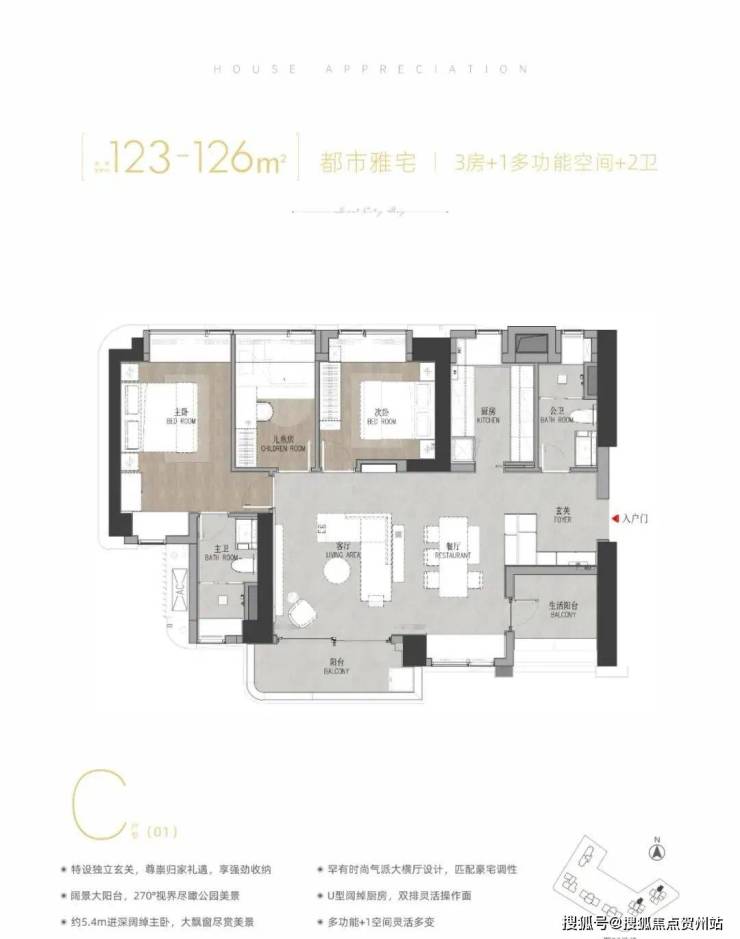 121-127㎡的4房2卫,部分户型楼间距更大,景观视野会更好,既有经典传统的3房+1多功能空间格局的方正三房两卫,也有餐客厅同宽、卧室在两侧的双龙抱珠的户型格局。