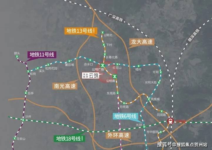 双高速:邻近龙大高速、南光高速两大城市动脉,畅达福田南山核心区双地铁:地铁6号线公明广场站约1.1km、13号线公明南站(在建)约700m,创享湾芯生活主干道:毗邻公明南环大道、松白路等主干道,高效通达全城。
