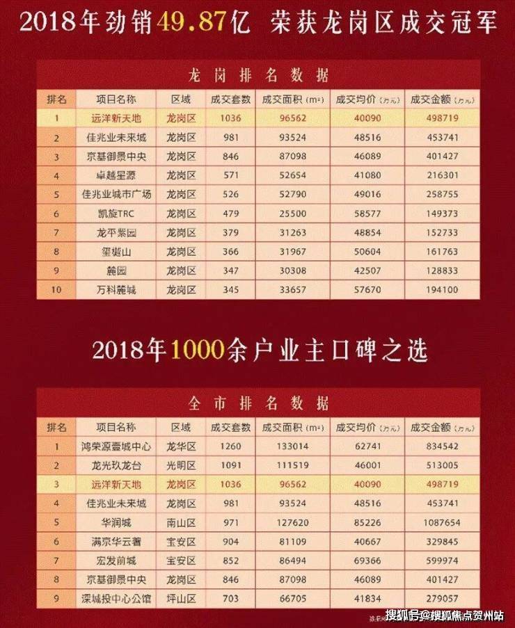 远洋新天地在2018年以1036的出售套数劲销49.87亿,荣获龙岗区成交冠军,在全市销售排名位列第三。