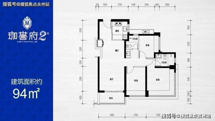 94㎡的3房2厅2卫:设计的是竖厅格局,动静分区,客厅3.4米开间,S墙设计预留冰箱卡槽位,3个卧室分别为3.7/2.7/2.35米的宽度,主卧270°环幕飘窗视野,U型厨房,阳台进深1.6米,西南朝向。