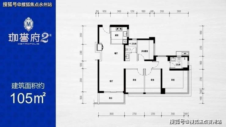 105㎡4房2卫:4开间均朝南看园林,主卧室双飘窗,做出了270°无敌视野。