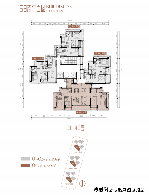 由53栋三个单元组成,3梯5户的配置,户型在89-190㎡之间,主打三到四房,共516套,小户型适合刚需家庭。