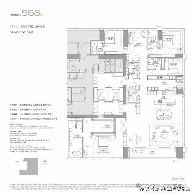 项目占地:9.23万平米建面27.7万平米,容积率仅3.0。规划有4栋纯大户型的商务公寓及35栋独栋董事公馆。并联袂全球最顶尖设计团队【美国雅布、英国凯莉·赫本、英国1508伦敦、意大利TOA、中国CCD。】共同打造的世界级豪宅作品。面积303-326-401-570-1000平米不等。