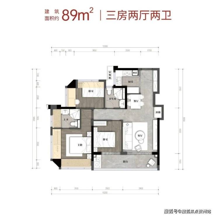 建筑面积约89㎡3房2卫