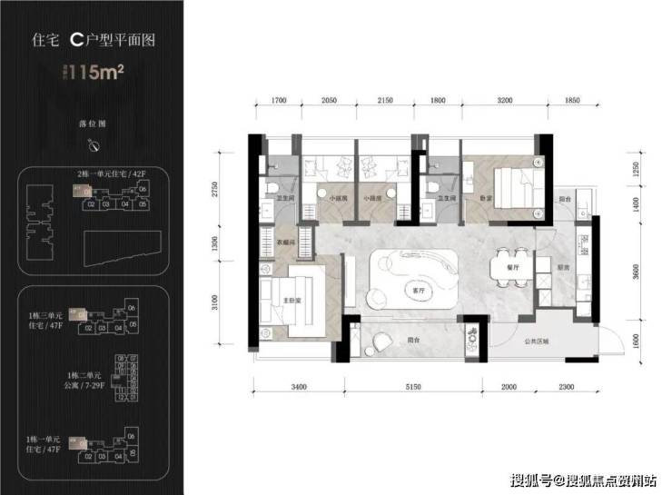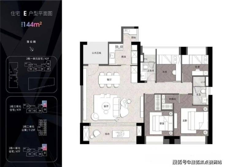 住宅1栋一/三单元47层 住宅2栋一单元42层 公寓29层