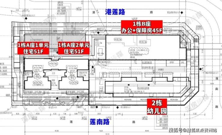 莲塘金岸里,由兆丰源公司打造,其背后股东主要是2家珠宝公司,总占地面积约0.82万㎡,总建筑面积约11.59万㎡,计容建筑面积约8.66万㎡,容积率9.62,绿化率40%,共由2栋45-51层高住宅组成,其中1栋A座1单元/2单元住宅51F,1栋B座办公+保障性住房45F,2栋是1所幼儿园。