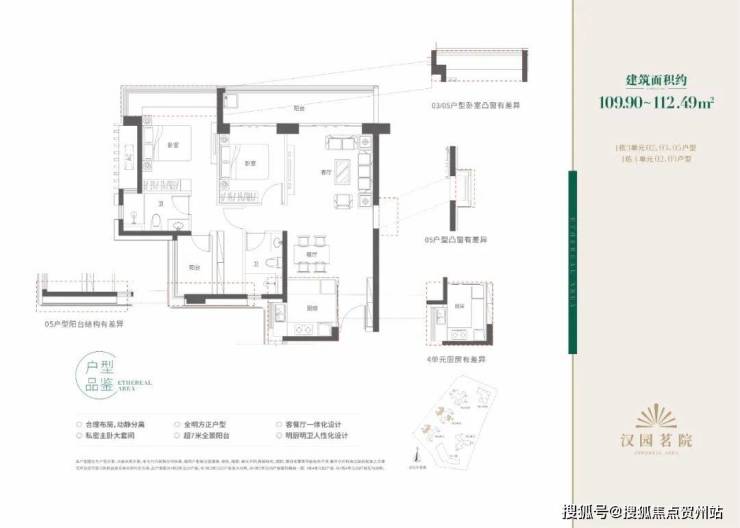 汉园茗院以改善型产品为主,户型面积包括109-112㎡三房两厅两卫、121㎡四房两厅两卫、157-159㎡五房两厅三卫和168-169㎡五房两厅三卫,户型设计非常不错,几乎都有偷面积把空间做大。