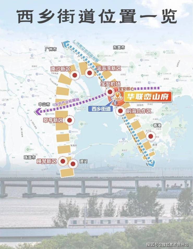 项目雄踞西乡心脉,占位宝中北翼,近107国道 (广深公路),三地铁 ( 12号线/20号线在建/28号线规划)交汇,约15分钟速抵宝安体育场等赛事核心区,从容接轨城市盛事;与欢乐港湾直线约3公里,日常即享世界级滨海演艺、摩天轮光影艺术…… (数据来源:百度地图测距)