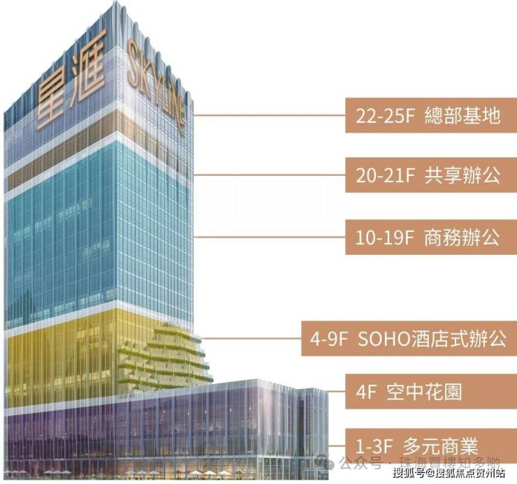 項目為約4.2萬m2的商務大厦,提供酒店式SOHO、商務辦公、共享辦公等多元辦公空間,盡享一線海景和澳門城市景觀。專案並配带豐盛業態的商場和配套,滿足一站式商務休閒生活需求。