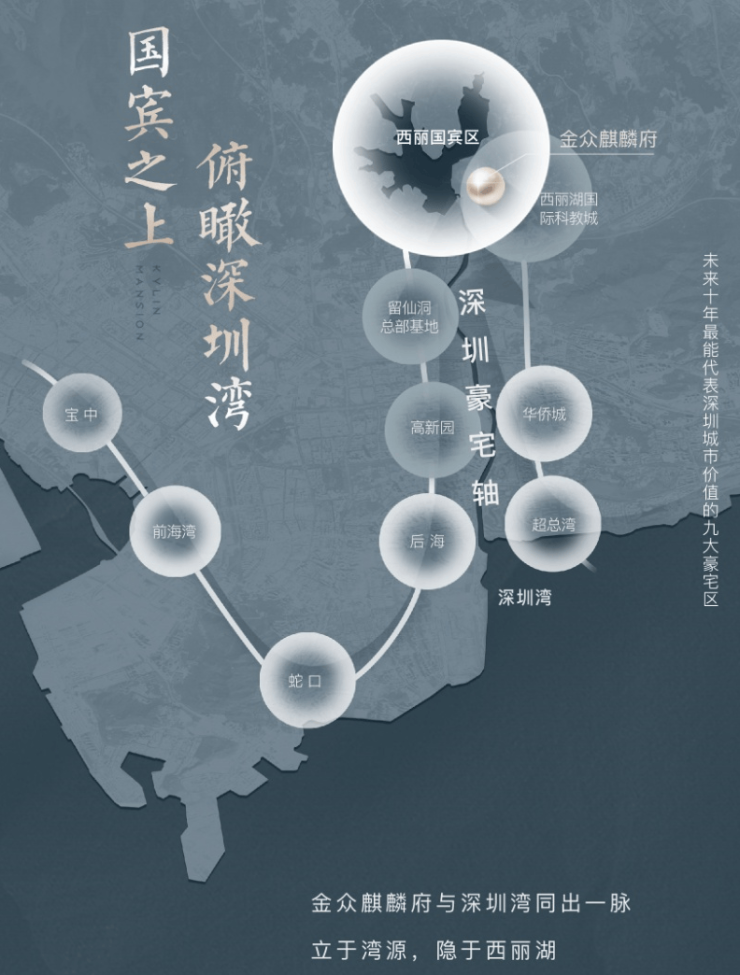 圈层-国宾资产 精英云集。背靠资本市场学院,占位西丽湖国际科教城,毗邻西丽高尔夫球场,同地块住宅麒麟公馆“全深圳最高学历小区”谈笑进阶高知圈层社交场。