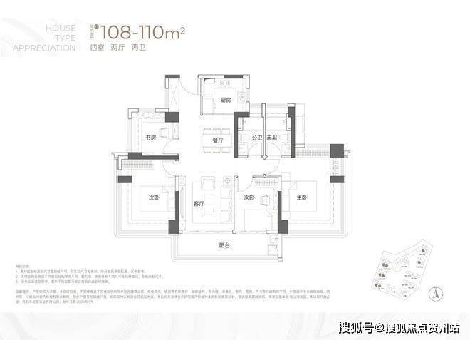 竖庭格局,西南向,基本居住功能与建面约108-110㎡4房2卫一致,但格局不一样,从目前公布的户型图上看,主要是主卧空间有了更大的提升,比如可以放更大一点的衣柜。但从位置上看,它所在的楼栋更靠近主干道,可能会有噪音影响。