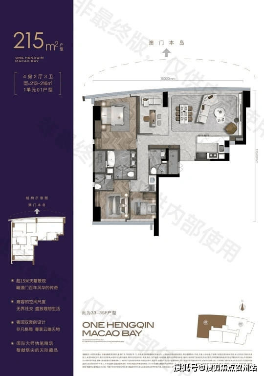 · 位置:横琴粤澳深度合作区荣港道 271 号,金融岛岛尖核心,紧邻 1.3KM 黄金海岸线,无遮挡眺望澳门城市景与海景。