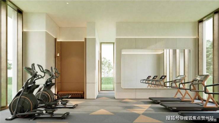 「天健湾时代府」小区内也带有健身房、会客厅、私宴厅、活动空间等配套设施,每栋建筑之间也有风雨连廊衔接。泳池做的是户外阳光泳池,规格是长25米 × 宽(2.5米×4条)的标准泳道。