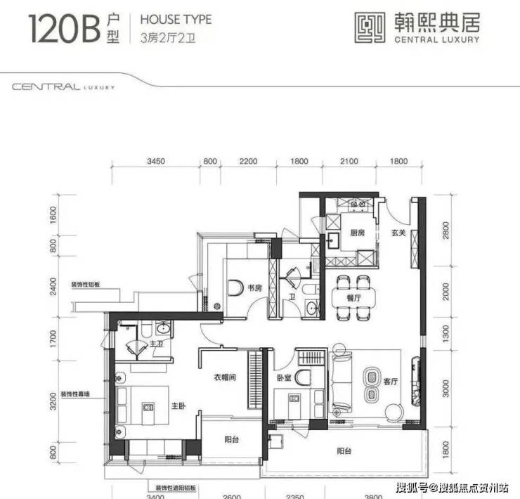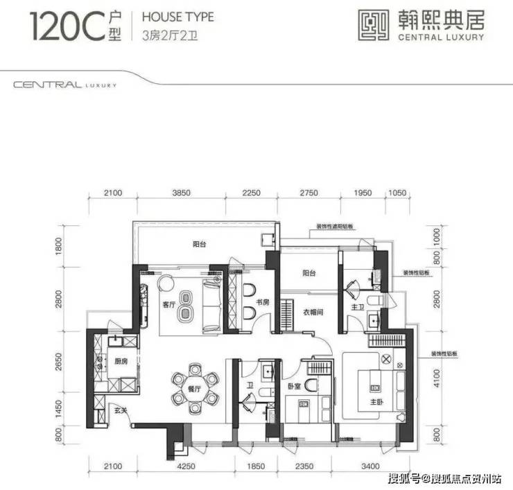 建面约120㎡的3+1房2厅2卫,