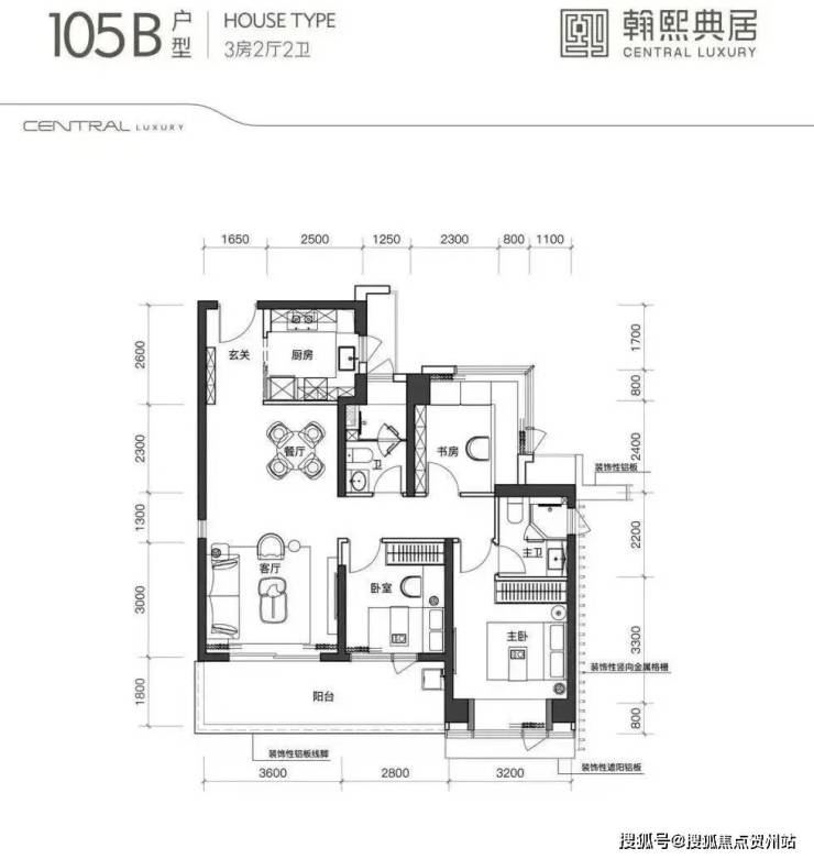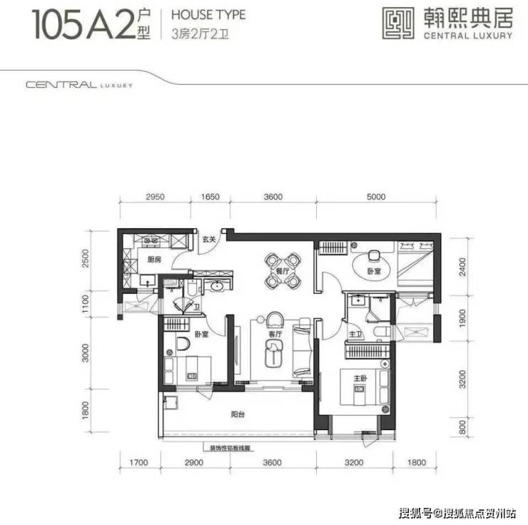 建面约105㎡的3房2厅2卫