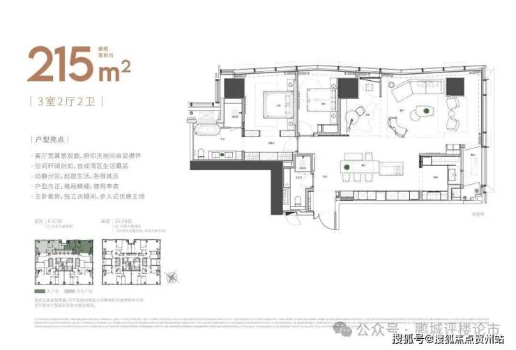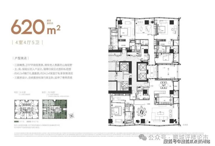 全户型纵享环幕视野。项目打造主力建面约215-415㎡纯粹品质公寓共191席,顶层为建面约1270㎡公寓产品。