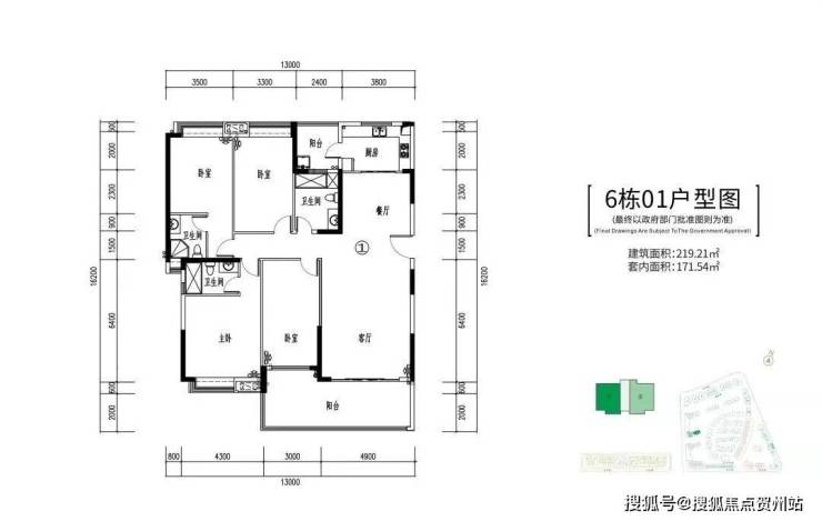 6栋:2-24层、两梯两户,219-234㎡四房
