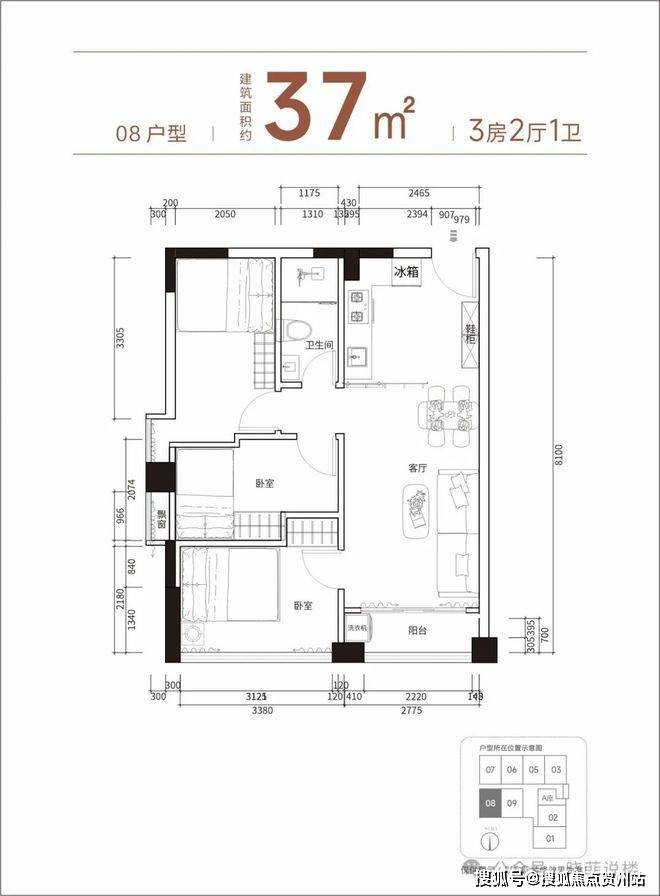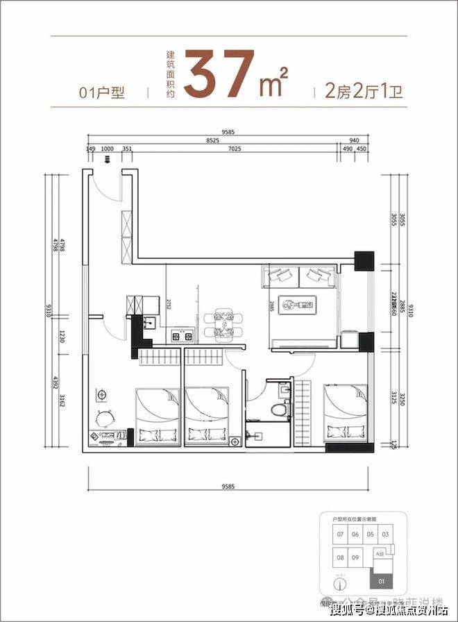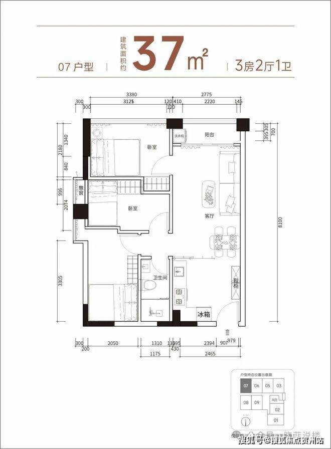 【产品面积】约37㎡小两房(实际套内使用面积接近54㎡)