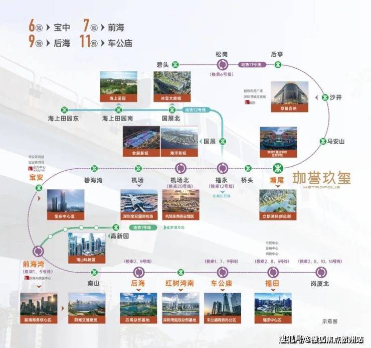 立体交通:四维枢纽的西部核心项目与地铁11号线塘尾站形成300米无缝衔接,4站速抵宝安机场,7站直达前海枢纽,11站贯通车公庙商圈。