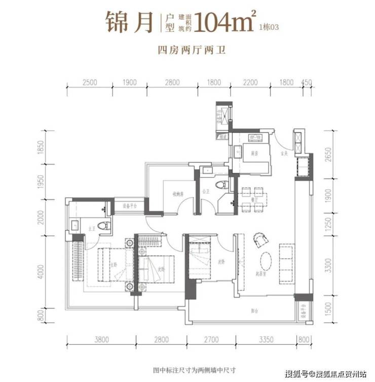 建面约104㎡4房2卫