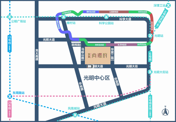 高铁:项目距离光明城高铁站约6公里车程 地铁:项目周边有地铁6号线、13号线(在建中)、18号线以及29号线(规划中)。