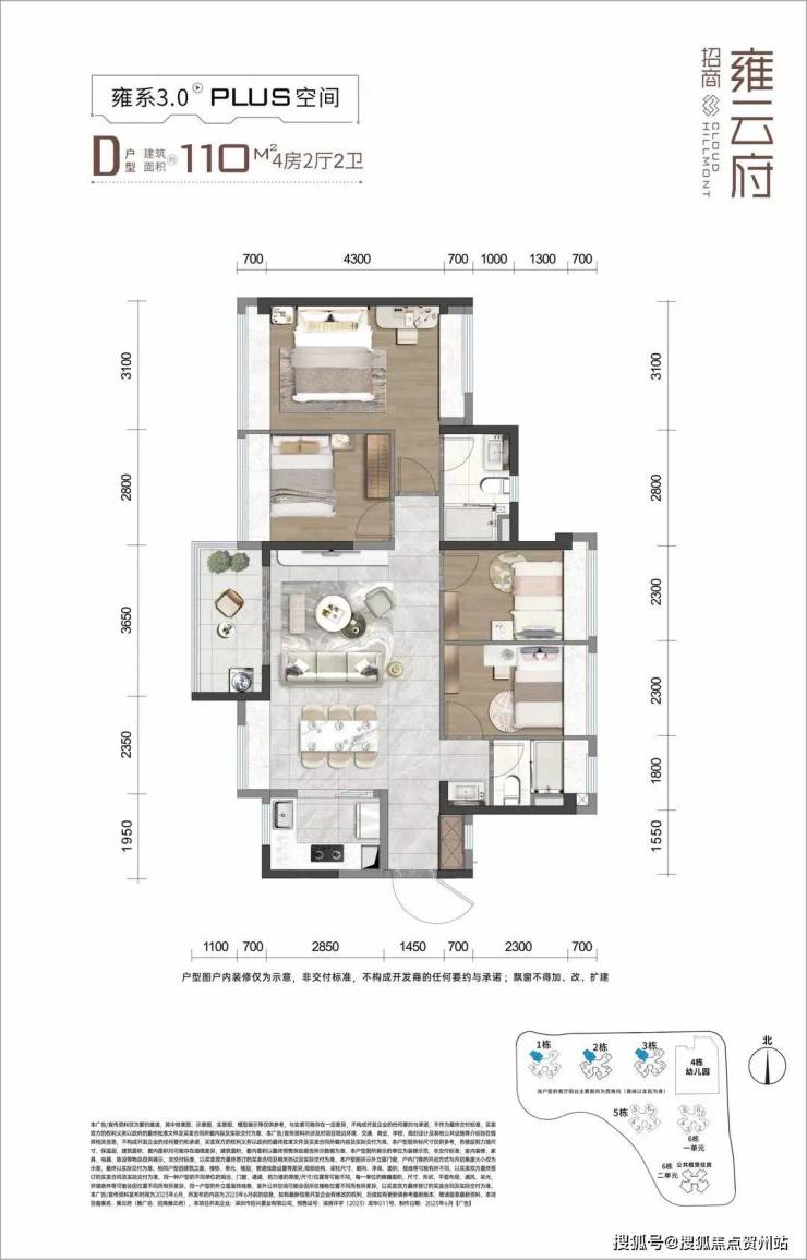 (5)110㎡ 4房2厅2卫:445万(仅剩2套);(西南朝向)