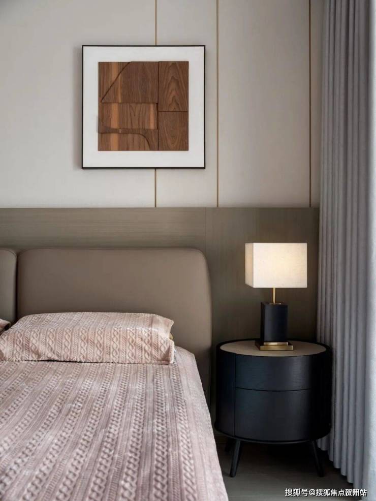 墙上木质艺术画凭借自然肌理与几何形态,为简约的别墅装修空间增添艺术韵味。整个卧室在克制美学里,弥漫着治愈的松弛氛围,宛如令人沉醉的专属梦乡。