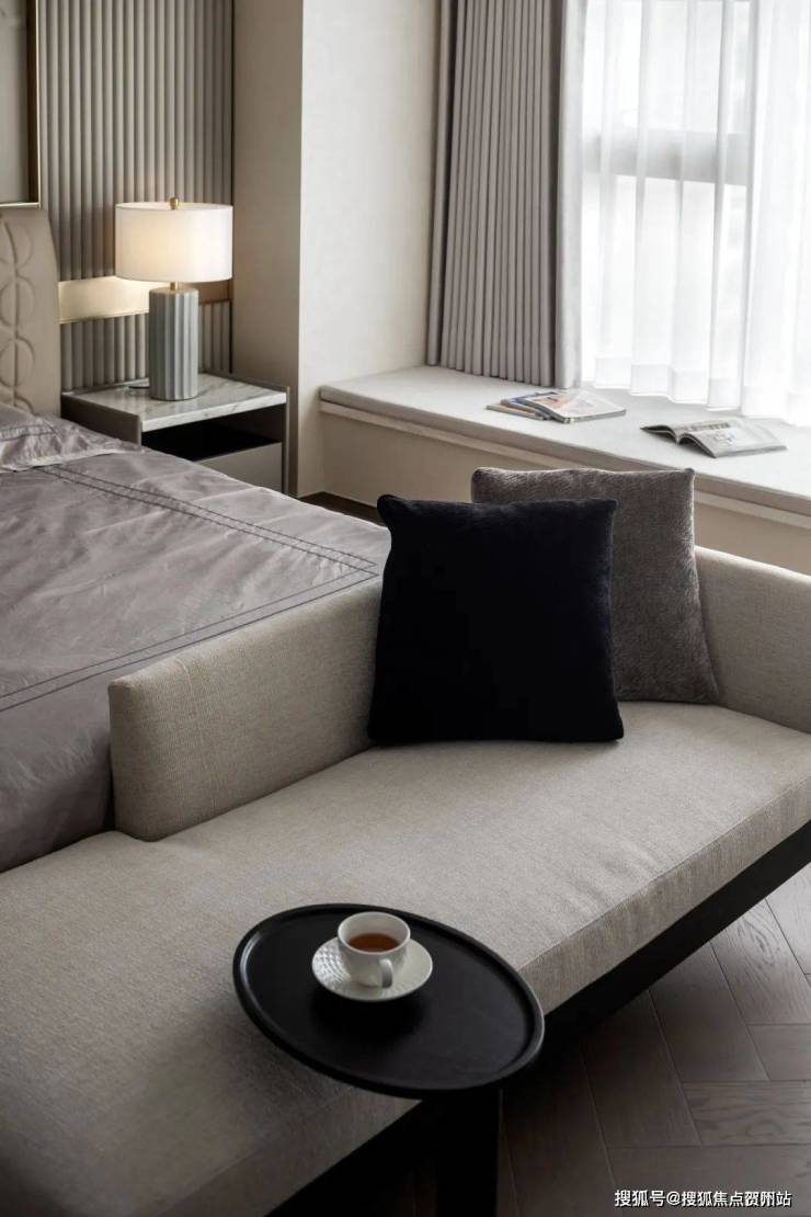 次卧主打柔和大地色系,营造静谧舒缓的休息氛围。浅灰色墙面恰似轻柔呼吸,配上精致金属线条,为别墅装修空间增添细腻秩序感。