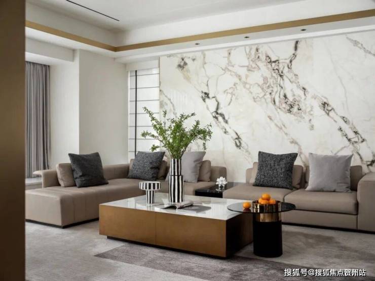 金属与大理石拼接而成的茶几,实现精致与实用的完美融合。金属光泽于光影间闪耀,宛如低调奢华的象征。