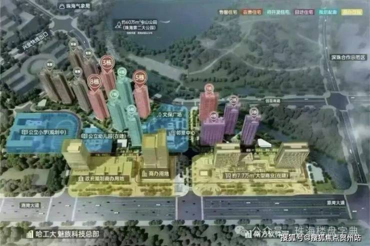 就在全珠海最大的公园旁边,房子在左边,公园在右边。建筑面积33万方,容积率3.0,总户数2027户,共14栋。
