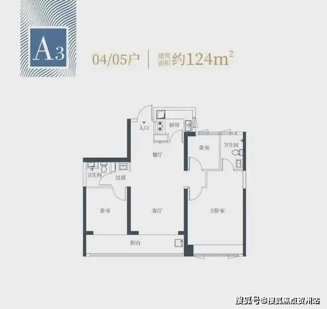 1栋一单元A3户型:面积约为124㎡