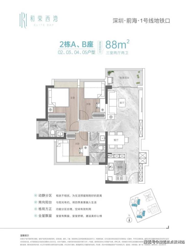 位于宝安西乡的和荣西湾项目,由3栋住宅+1栋幼儿园组成,占地面积约0.9万㎡,计容建面约2.66万㎡,容积率约2.88,是目前市场较低密度的项目。