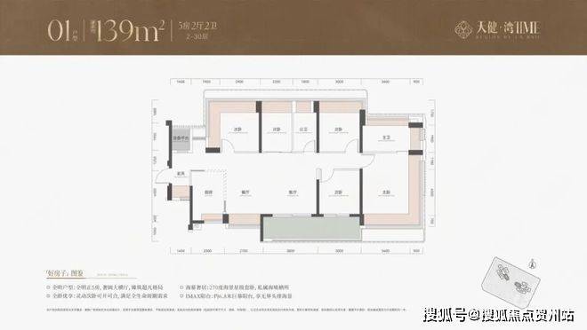 139平4房户型,同样以朝南、西南朝向为主,能够享受良好的采光和海景、山景资源。