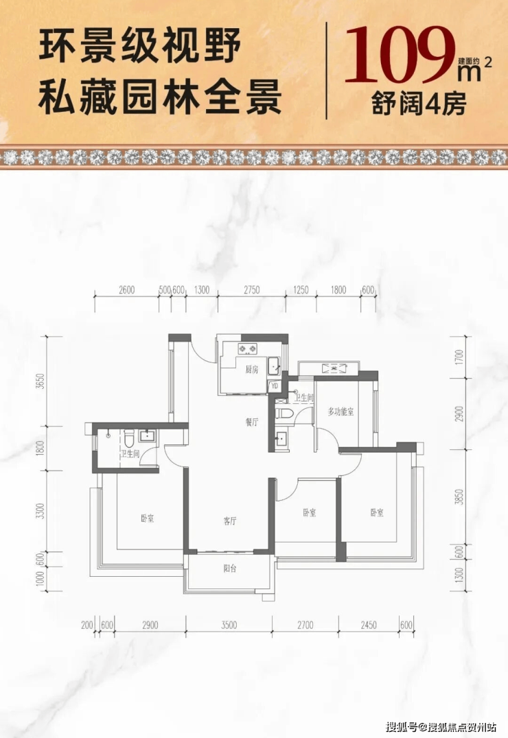 109㎡的4房2厅2卫,折后总价541-560万/套,单价4.96-5.13万/㎡。