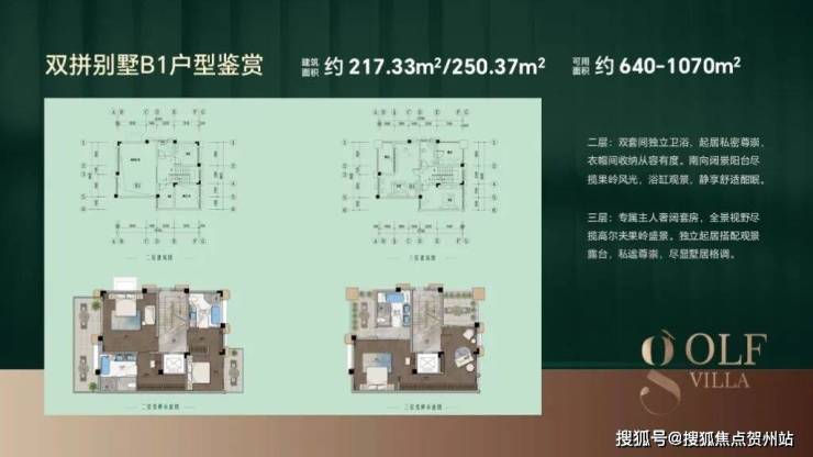 🔺双拼别墅B1户型:建筑面积217.44-250.35㎡,可用面积约640-1070㎡