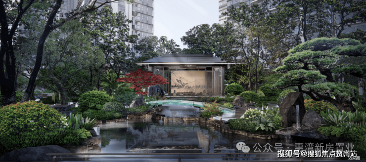 鹏宸云筑,深圳近10年超大纯居地块,打造约31万岭南人文住区。西区园林以岭南四大名园“清晖园”为灵感,在“一轴一心一环·山水六境”的格局中重构岭南风骨。