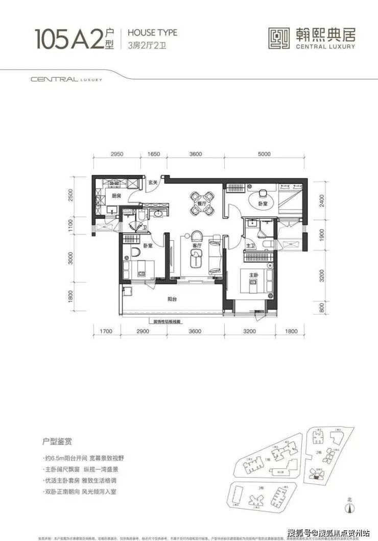 该户型为 02 地块的唯一一条腿,非常稀缺。户型南北通透,带大主卧套房的奢居型三房。带 5.35m 观景台,大横厅奢阔空间设计,主卧同客厅阳台、餐厅三面宽朝西南。北向双次卧、双卫生间、拓展空间共五面宽一字排开,视野全面俯瞰社区内园林,静谧舒适。