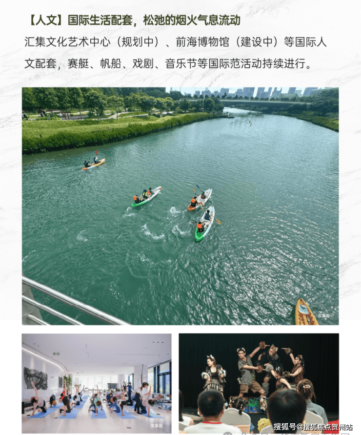 人文气息浓郁,汇集文化艺术中心(规划中)、前海博物馆(建设中)等国际人文配套设施。赛艇、帆船、戏剧、音乐节等国际范活动持续开展,营造出松弛的烟火气息。