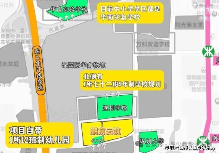 学校:项目北侧规划有广东省一级学校建设标准的72班九年一贯制学校,还有18班小学规划,近邻华南实验学校、万科双语学校。目前小学、初中学区都是华南实验学校。